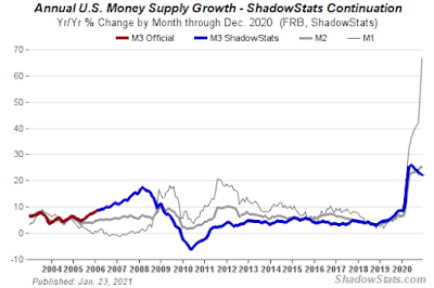 Unfortunately for investors, low short term interest rates continue to lead to negative real yields in bank and money market accounts, which forces many investors to abandon cash for risk assets especially as inflation expectations rise. Many investors also seem to be carefully watching for signs of inflation, although certain key indicators like the dollar (which has been steadily declining), gold / silver (which have been flat to down), bitcoin (which although off its recent all time highs has held up pretty well) and commodities (which have been mixed) are sending mixed signals. In the medium to longer term, I think it's safe to assume gold, silver, commodities and bitcoin will continue to rise as the world economy recovers from the pandemic and demand increases strongly in the face of constrained supply. The unprecedented fiscal and monetary stimulus will serve as a powerful force driving this and if inflation does indeed spike, it could be very difficult politically and take quite some time to tamp it down if history is any guide. Here are a few charts that highlight some of the challenges: