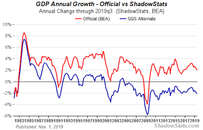 Meanwhile, real GDP growth has actually been negative for years (that's why for many it feels like the Great Recession never ended); even the official number has been dropping recently: