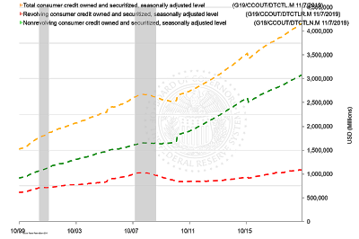 The real story behind the recovery since the Great Recession is the growth of consumer debt, which currently stands at just over $4 trillion and has almost doubled since the end of the last recession; the collapse of consumer credit could trigger the next recession, since the consumer drives about 70% of the economy: