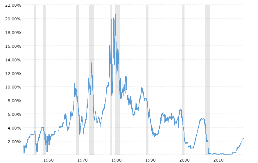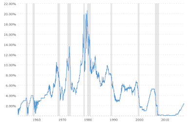 Historically low interest rates are likely to continue for some time (see chart below), keeping cost of borrowing low and favoring leverage and higher-yielding investments (i.e., margin accounts invested in stocks)Recent tax cuts have largely run their course, but have materially enhanced corporate income statements, fueling stock buybacks and dividend increases; the lower corporate tax rate tailwind effect is likely to continueLow and declining unemployment rate more likely than not to continue as economy chugs alongRecord corporate earnings - Q4 2018 67% of Companies reporting beat their earnings projectionsFear and Greed Index showing Greed - if you're a momentum investor, that's good and you go with the flowBanks are in good shape and real estate lending is relatively conservative these days