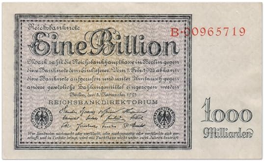 The picture below is a 1 Billion Mark banknote from post World War I Germany (Weimar Republic – circa 1923). At that time, Germany was experiencing hyperinflation which resulted from massive money printing in an attempt to pay war reparations. By November 1923, 1 US Dollar was equivalent to 4.2 Trillion Marks!