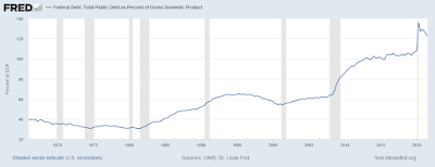 So if you're wondering why in my recent portfolio allocation update (check it out here), I reduced my allocation to bonds to zero, this is it in a nutshell. Bonds (and to a lesser extent cash) are probably the riskiest assets out there currently, certainly more risky in my mind than holding hard assets such as real estate, Bitcoin, gold, silver, commodities, etc. in the face of the kind of inflation we are seeing. Also, even though the Federal Reserve is talking a good game about pivoting to fighting inflation, if the economy slips into a recession (which seems possible in the next couple of years due to lower fiscal stimulus and tighter credit conditions) or even if economic growth simply slows meaningfully with high inflation (stagflation) and the stock market suffers a big enough correction, they will be forced to back off and resume the low rate, quantitative easing environment. As Lawrence said in the podcast, "you can't taper a Ponzi." The days of Paul Volcker raising interest rates to double digits to squash inflation are over, with debt to GDP ratio at levels we have not seen in recent history (see chart below).