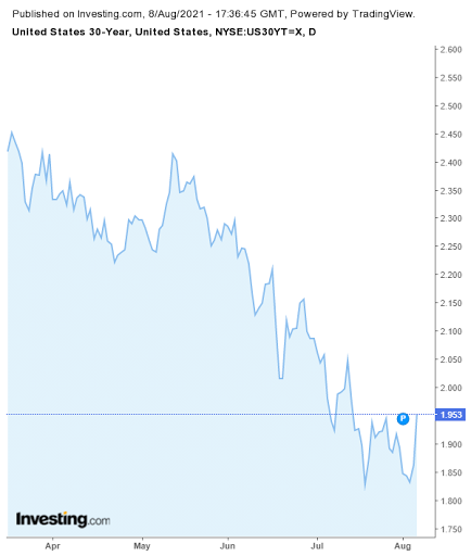 Here's a chart of 30 year Treasury yields: