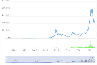 Bitcoin Since InceptionThe Bitcoin chart shows a clear recovery from the recent dip to around $29K - $30K and while it has some ways to go to reclaim the recent all time high, from what I have learned from on chain analysts I follow, the available supply on exchanges is shrinking just as demand for coins is increasing. The main demand for coins is global adoption as an alternative investment and to a lesser extent for payments, especially in countries that have experienced hyperinflation in their local currencies. Short term supply and demand imbalances will be a recurring feature as will the volatile bull and bear cycles of Bitcoin, but the long term potential for appreciation in this asset class is unparalleled, particularly given the adoption trend which many have compared to other technologies including the internet itself. Also, Bitcoin has proven itself over the past 10 years despite major draw downs, that it can appreciate an average of 200% per year, so this benefits long term holders (vs traders who can easily get wiped out on the volatile short term movements).