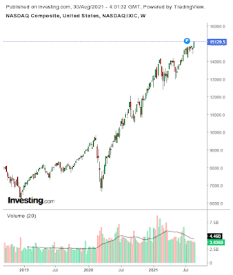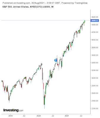 For this week's post, I thought it would be good to give a market overview in light of the Federal Reserve Chairman's comments last week on starting to taper bond purchases later this year and continuing to hold interest rates low. This ignited a strong stock market rally on Friday after a volatile last couple of weeks, presumably lifting some of the uncertainty about the Fed's path forward. The question now is which way will the market go. A difficult question to answer, especially since September is typically not a great month for the stock market. On the flip side, the ongoing economic recovery, strong corporate earnings and favorable monetary / fiscal environment are positives. Perhaps the biggest positive is the continued "easy money" environment supported by the Fed. Some market watchers see economic weakness on the horizon based on some of the recent mixed economic data and a slowdown would obviously be bullish for bonds and not so bullish for the stock market. There is however, a big difference between a recession and moderating growth in 2022 and we could be seeing the latter, which would still bode well for the stock market for the remainder of the year and next.Starting with the S&P 500, the linear trend continues to be up and there doesn't seem to be much in the way of keeping that going in the near term. Of course, there may be pull-backs and the market is due for a correction at some point, but predicting the exact timing is very difficult.