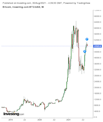 Bitcoin continues to mount an impressive rally from the recent 50% "crash" from all time highs. Some analysts believe that Bitcoin could hit $51K or $52K and then it will drop all the way down to the $15K - $20K range before consolidating and moving up again. If that's the case, I would definitely be a buyer at those levels. Others have said that it will continue to move up and once it breaks through the former all time high, $100K could be the next target level before the end of the year. Only time will tell, but the best approach is to buy on the dips and dollar cost average on a regular basis. See my post last week on Bitcoin investing rationale for more info.