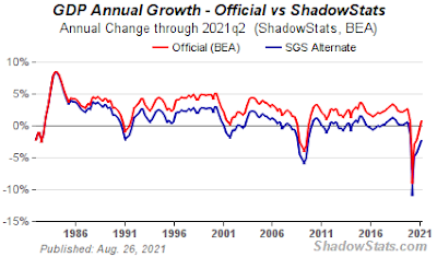 It's time for my monthly portfolio allocation update. Rather than provide a broad market overview (indeed, both the stock and bond markets have seen a lot of selling action lately), I thought I would focus on a couple of key themes that seem to be driving recent market volatility. What matters most in investors' minds today seems to be weak(er) economic growth coupled with strong inflation trends. This is also known as "Stagflation," an unhappy situation where the economy (GDP) is not growing, while prices continue to rise. Even the official data would suggest we are heading in that direction and alternate data (shown below) would suggest things are considerably worse (much higher actual inflation and lower growth). This situation amplifies investor nervousness on a number of subjects including: an abnormally long "win" streak of all time highs in the stock market, persistent negative real yields on bonds, weak stock market seasonality, a potential looming real estate debt crisis in China (Evergrande), the US debt ceiling and potential default, US Federal budget and taxation uncertainty, ongoing COVID concerns, etc. Many market participants think the odds of a significant stock market correction are growing, while some analysts are still expecting volatility with more upside through the remainder of the year as the US economic recovery (led by a resilient consumer) continues. Indeed, the market seems to have mostly been "climbing a wall of worry" for the last few months. The next few months through the end of the year will certainly be interesting to watch.