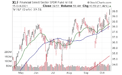 Financials also had a strong and fairly consistent upward trend, supported by a steepening yield curve (strong bank earnings this week seem likely to continue to provide a catalyst for more gains in this sector if supported by yield curve):