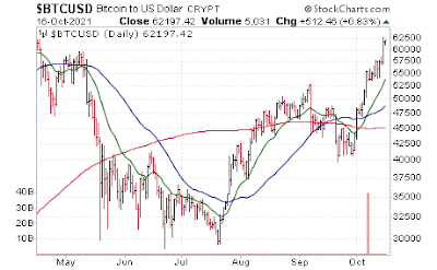 The big story of the week is the Bitcoin rally to break above $60K and getting very close to prior all time highs; SEC approval of new bitcoin futures ETF's expected to start trading next week, as well as continuing interest as an inflation hedge and substitute to gold may be driving some of the rally (institutions vs individuals):