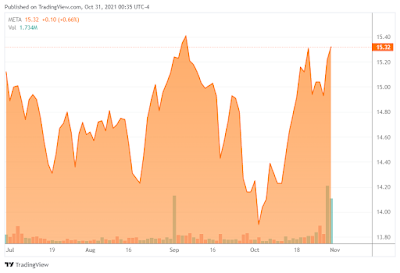 Roundhill Ball Metaverse ETF (META) - this ETF includes stocks related to the metaverse theme, most of which you will recognize. It hasn't really performed that well since it launched back in June, most likely due to the up and down performance of tech so far this year, but maybe the future will look better for this ETF. It has seen a pickup in volume and inflows after the Facebook announcement last week, as discussed .