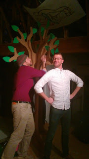 Being a dramaturg requires tree climbing. Also pictured is Dan, the show's choreographer