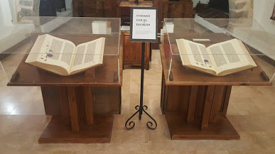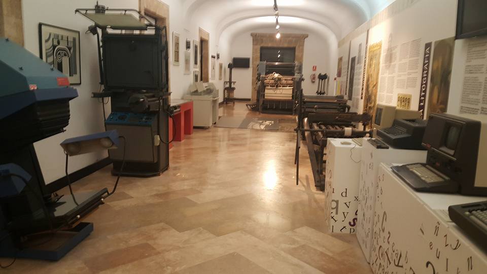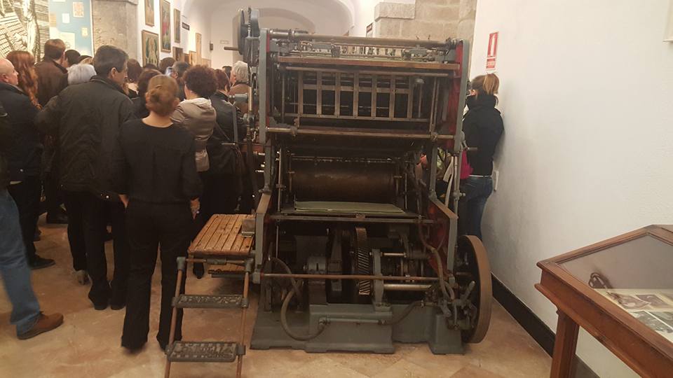 Como inicio del evento, guiados por José Escobedo , director de la editorial, tuvimos la oportunidad de recorrer el museo de la imprenta (el evento forma parte de la celebración de la semana Gutemberg) que se encuentra en la parte baja del monasterio, distribuido en un par de largos pasillos y cámaras. Este museo es el segundo mas importante de Europa referido a este genero, y en el podemos observar la evolución de las maquinas desde su primer diseño, pasando por los enormes primeros computadores que se crearon para tal fin en los prolegómenos de la era informática (solo hay que imaginar tras ver estos prodigios de la ingeniería en su día, la comparación con las actuales impresoras laser).