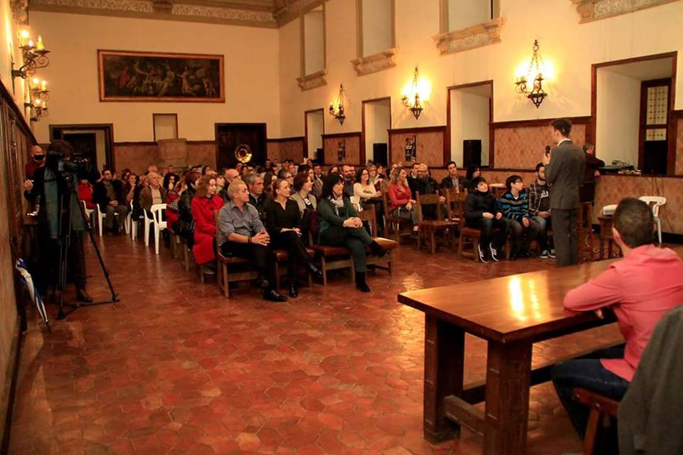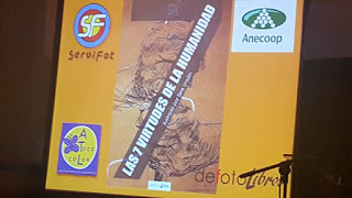 Tras el patio interior y la entrevista, el refectorio del Monasterio nos acogió para presenciar la entrega de premios de este III Certamen y asistir a la presentación del resultado del mismo, la antología Las 7 Virtudes de la humanidad (que podéis conseguir pinchando en el enlace del nombre) que recoge 125 relatos cortos salidos de esta convocatoria, incluidos los finalistas, ganadores de categoría y ganador absoluto del certamen. 125 maneras diferentes de aproximarte, conocer, disfrutar, emocionarte y sonreír con estas virtudes antepuestas a la primera antología que dio a luz Defoto Libros , Los 7 pecados capitales. Una presentación y entrega de diplomas, amen del detallazo que supone la entrega del relato impreso en grande sobre un soporte acorchado, nuevamente dirigida por la guapísima y simpática Kala Waitforit Ssaya.