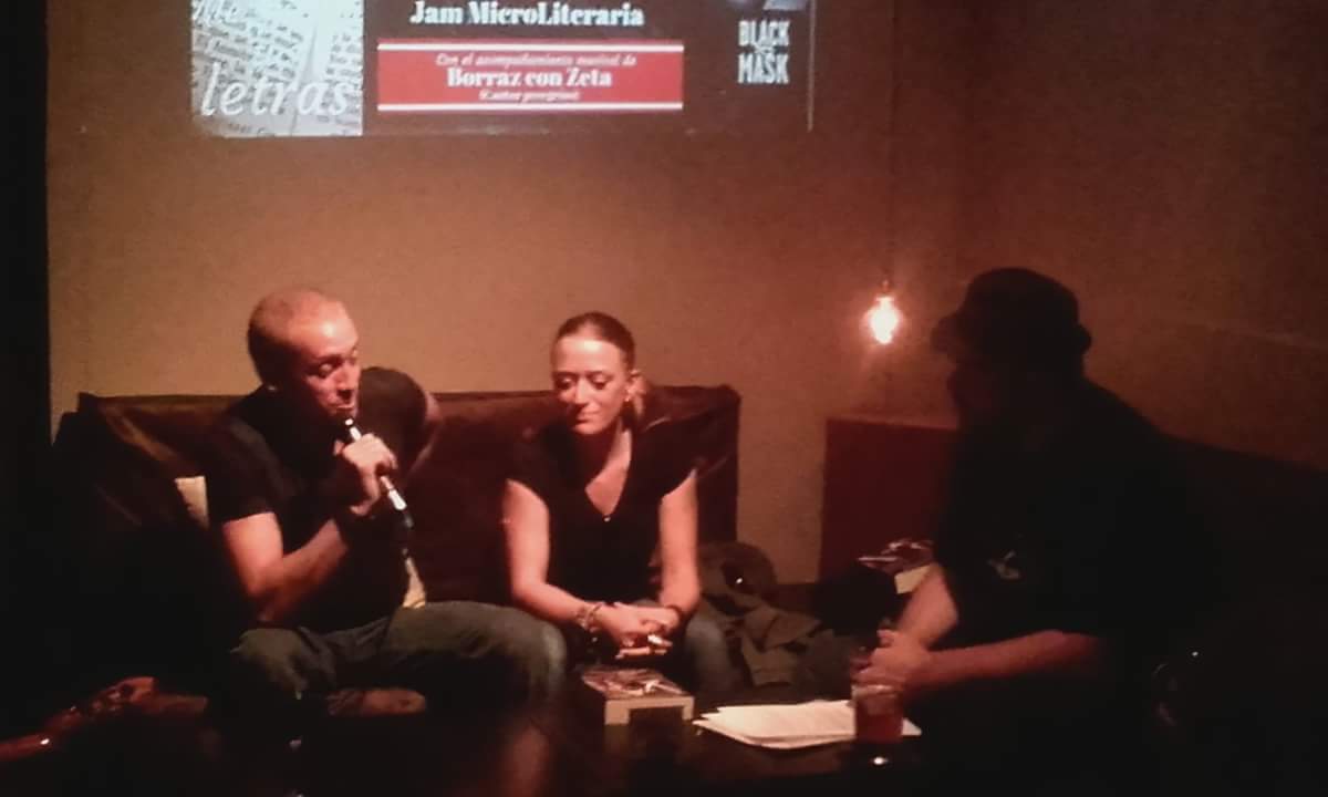 Con Ignacio Borraz, anfitrión y maestro de ceremonias de ME SUENAN TUS LETRASAntes de comenzar, pudimos departir un rato con nuestro amigo y autor Francisco José Ruiz Molina , quien no solo nos sorprendió con su visita para vernos una vez más, si no que tuvo el inmenso detalle de regalarnos un ejemplar firmado de su obra El alma de mi tierra . Muchas gracias, compi, nos hizo gran ilusión. A la pequeña charla informal sobre literatura y vicisitudes editoriales, se unió un gran amigo de Alcant. Alguien a quien teníamos muchas ganas de conocer, y que nos alegró enormemente ver que se había acercado hasta el Jamming con su ejemplar de la edición anterior de La leyenda de Sebastien Venom , para que se lo firmáramos y conocernos: Jorge Herrero Martinez . Jorge es un apasionado y devorador de literatura fantástica, ficción, y terror, amén de un excelente reseñador. Gracias a su presencia pudimos agradecerle la fantástica reseña que hizo de nuestra novela para la revista Dissident Tales en octubre del pasado año.