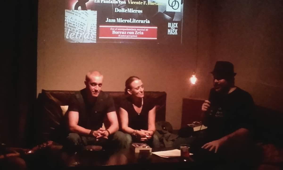 Pero ahí no acabo todo. Luego llegó el turno de más música por parte de Borraz Con Zeta, el descanso, y el debut de la nueva sección “En pantalla”, con conexión con Vicente F. Hurtado , que nos deleitó, y sobre todo nos entretuvo, con sus geniales, disparatados, y desternillantes micros.Aun quedo tiempo para el concurso de relatos cortos entre los presentes, cuyo tema esta vez era “fantasmas” siendo los afortunados ganadores Alejandro Cano y Julián Sánchez Caramazana, que recibieron un ejemplar de “Fantasmas ” y de “ La leyenda de Sebastien Venom” como premio.