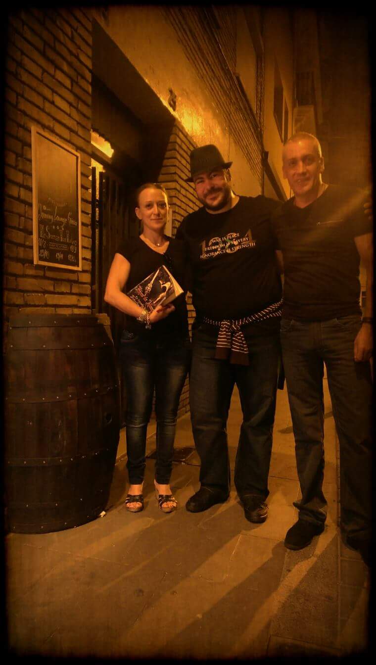 Antes de comenzar, pudimos departir un rato con nuestro amigo y autor Francisco José Ruiz Molina , quien no solo nos sorprendió con su visita para vernos una vez más, si no que tuvo el inmenso detalle de regalarnos un ejemplar firmado de su obra El alma de mi tierra . Muchas gracias, compi, nos hizo gran ilusión. A la pequeña charla informal sobre literatura y vicisitudes editoriales, se unió un gran amigo de Alcant. Alguien a quien teníamos muchas ganas de conocer, y que nos alegró enormemente ver que se había acercado hasta el Jamming con su ejemplar de la edición anterior de La leyenda de Sebastien Venom , para que se lo firmáramos y conocernos: Jorge Herrero Martinez . Jorge es un apasionado y devorador de literatura fantástica, ficción, y terror, amén de un excelente reseñador. Gracias a su presencia pudimos agradecerle la fantástica reseña que hizo de nuestra novela para la revista Dissident Tales en octubre del pasado año.