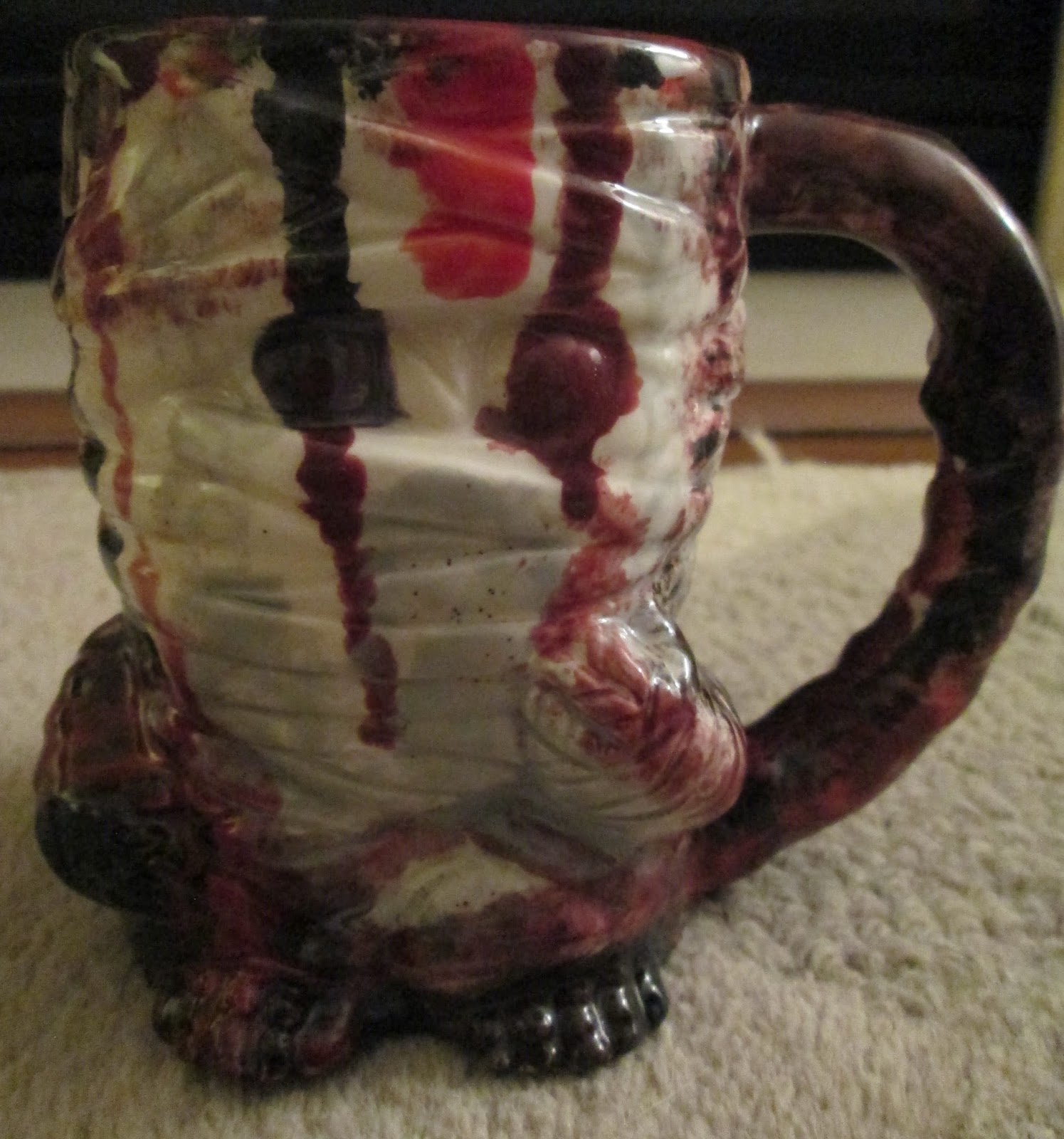 This one of a kind, hand painted pottery mug would be strangely and oddly fun for drinking coffee, tea, mummy juice, zombie blood or whatever else you please - during Halloween season or any time!