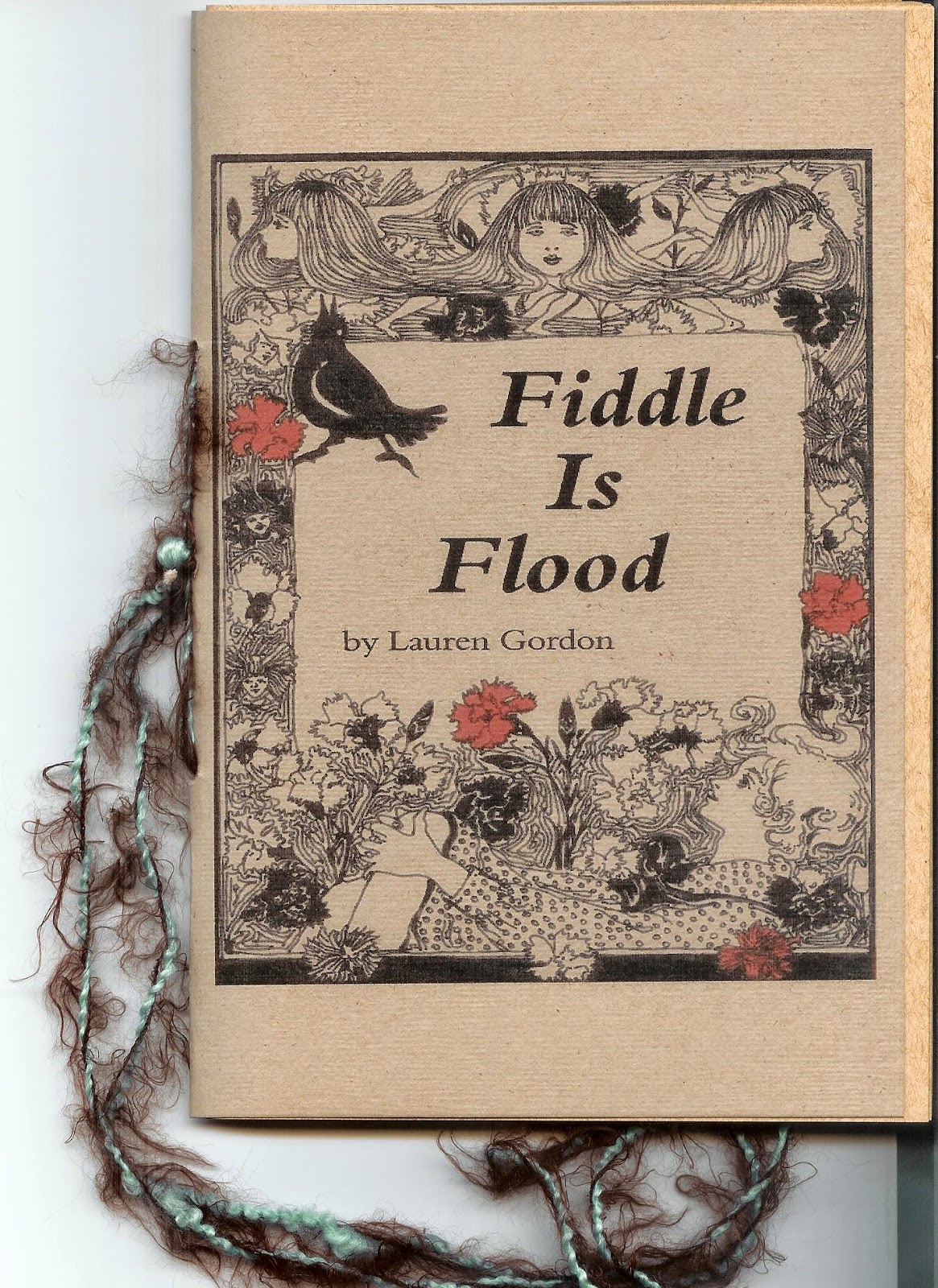The first new Blood Pudding Press contest winning poetry chapbook of 2015, Fiddle is Flood by Lauren Gordon, has arrived!It offers twenty-two unique and powerful poems, inspired by Little House on the Prairie!Semi-abstract and gorgeously emotional, fabulously crafted, with an utterly one-of-a-kind approach, this content is worth multiple reads.It is also charmingly wonderful to hold this hand-designed chapbook in all its cover art glory and yarn binding.The cover art was created by the poet herself. Here are a few sample lines for you, from the poem, "Then I'm A Woman, Full and Fleshed":