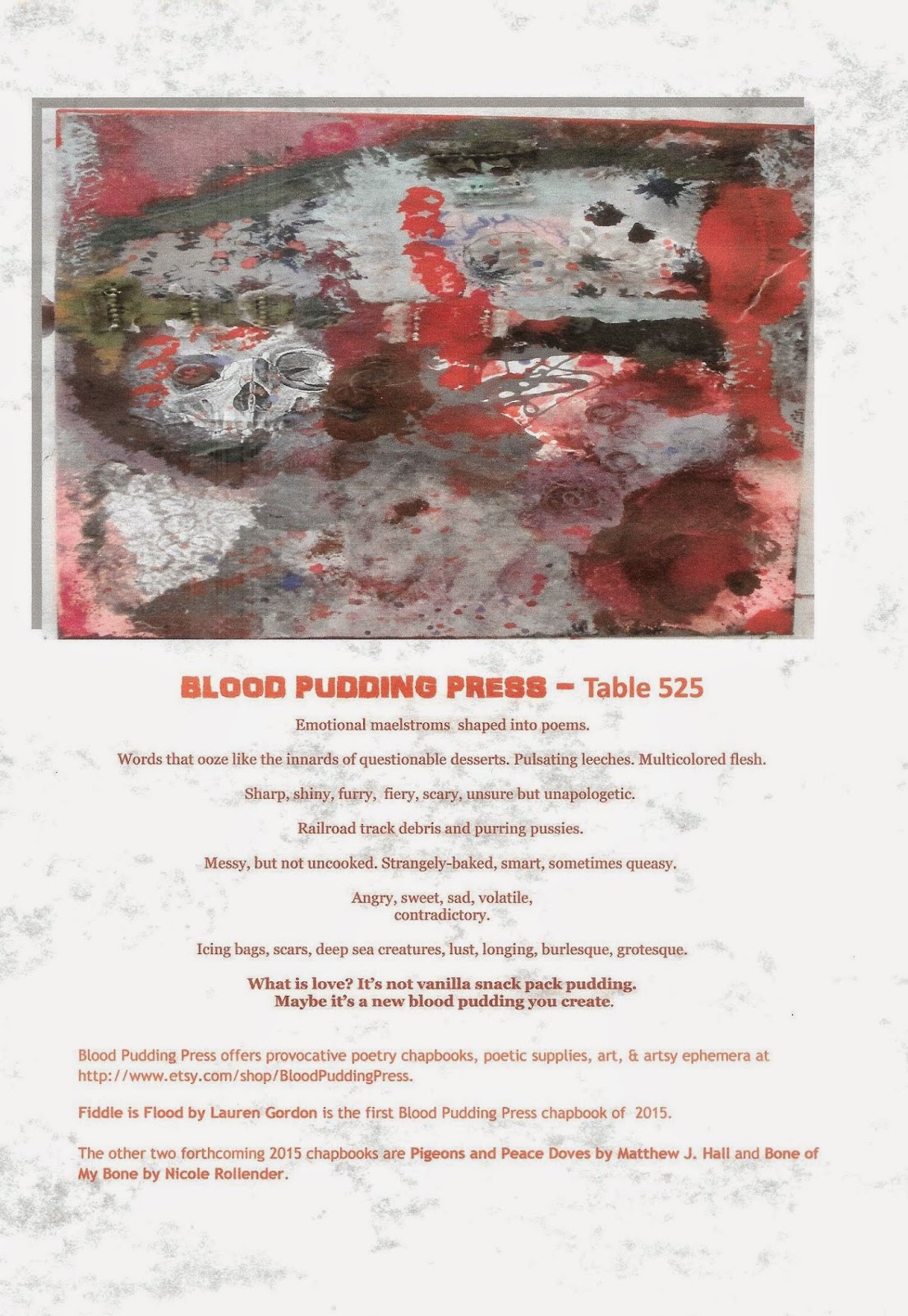 NEW from Blood Pudding Press! - Fiddle Is Flood by Lauren Gordon - the first Blood Pudding Press poetry chapbook of 2015!