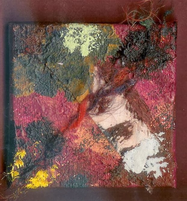 Mini Aneurysm is the title of this TINY one-of-a-kind, painting/collage art hybrid, inspired by a carotid artery dissection the artist had, which resulted in several aneurysms, which resulted in a stroke.