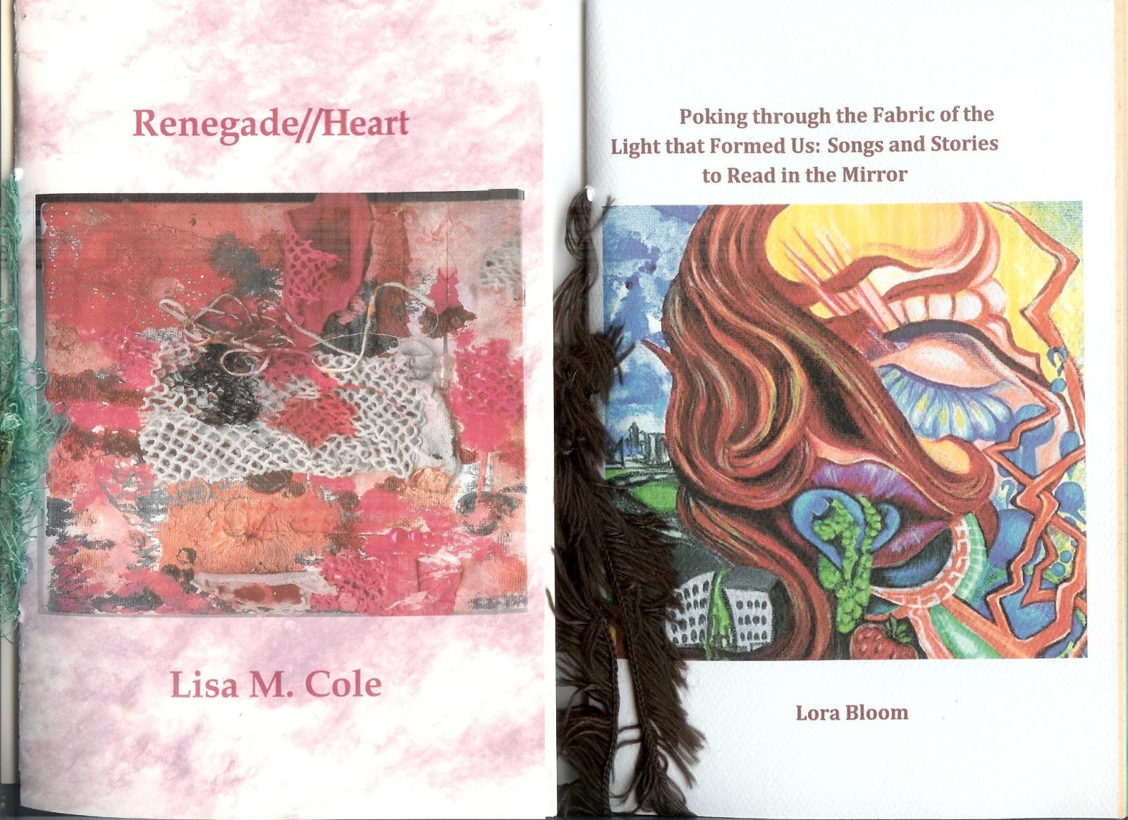 Set of TWO – Get both NEW 2013 Contest Winning Blood Pudding Press Poetry Chapbooks for a substantially lowered price when you buy them together – Renegade//Heart by Lisa M. Cole AND Poking through the Fabric of the Light that Formed Us by Lora Bloom