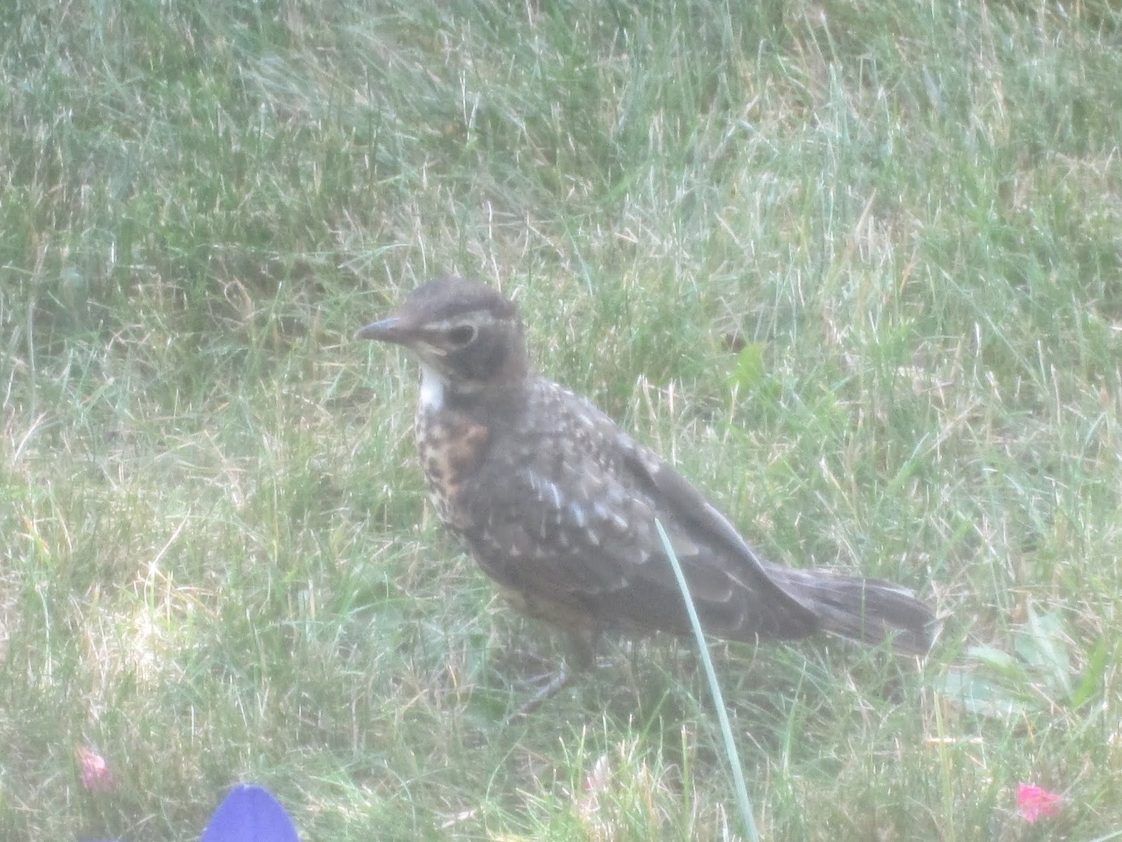 I'm not sure if this is one of the birds who recently left the nest (if it is, they sure grow fast) or another young bird, but it was hanging out in my front yard for a while yesterday.