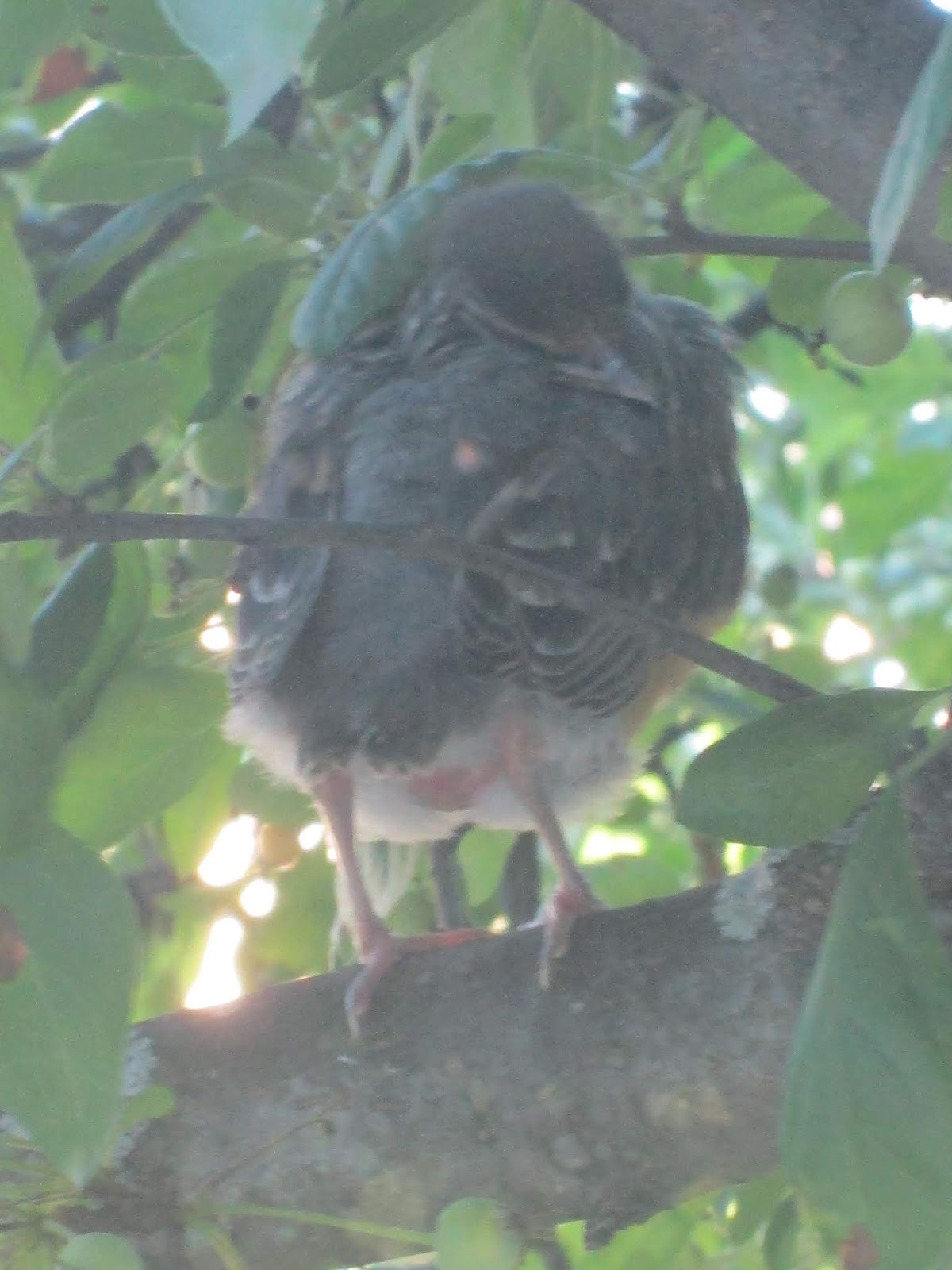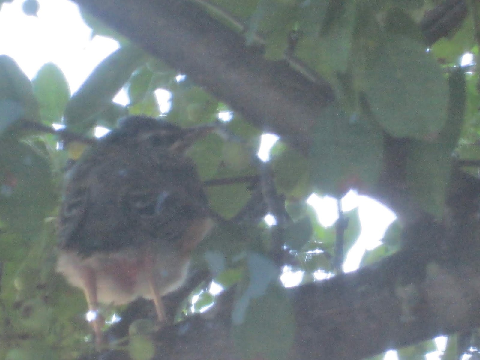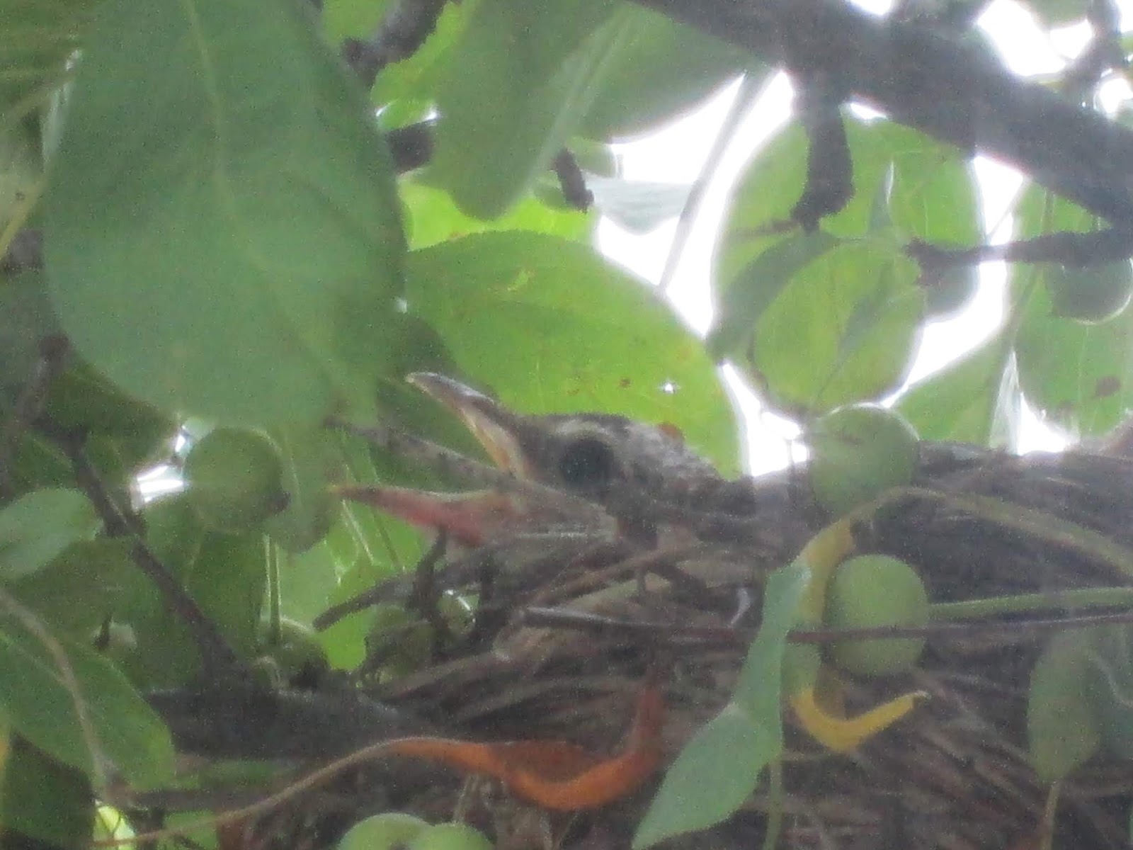 One of the baby birds slowly but surely worked its way out of the nest and then tried to fly again...