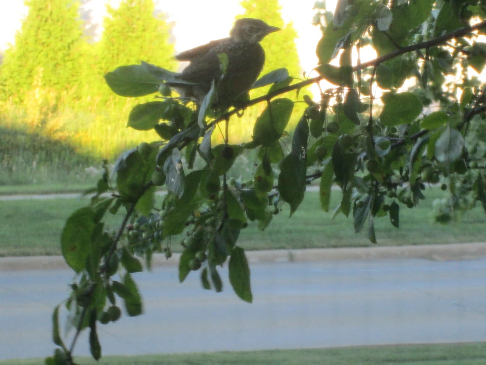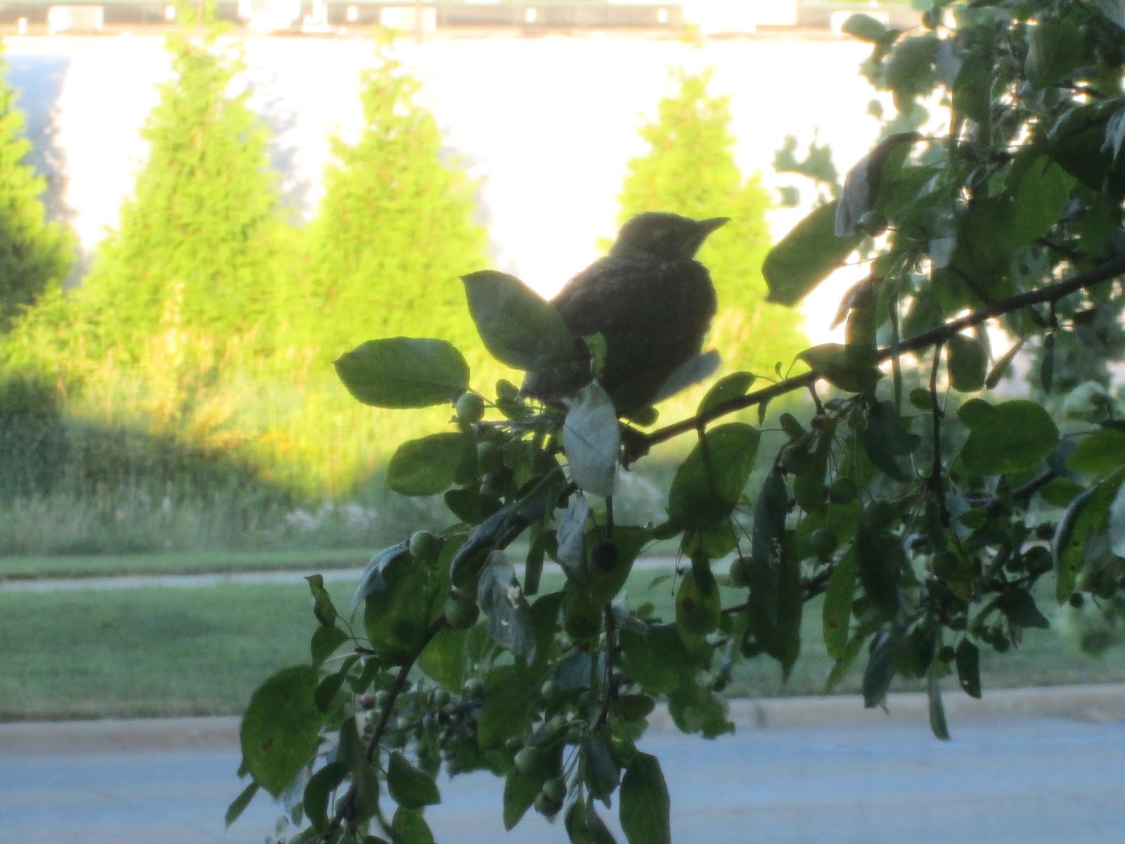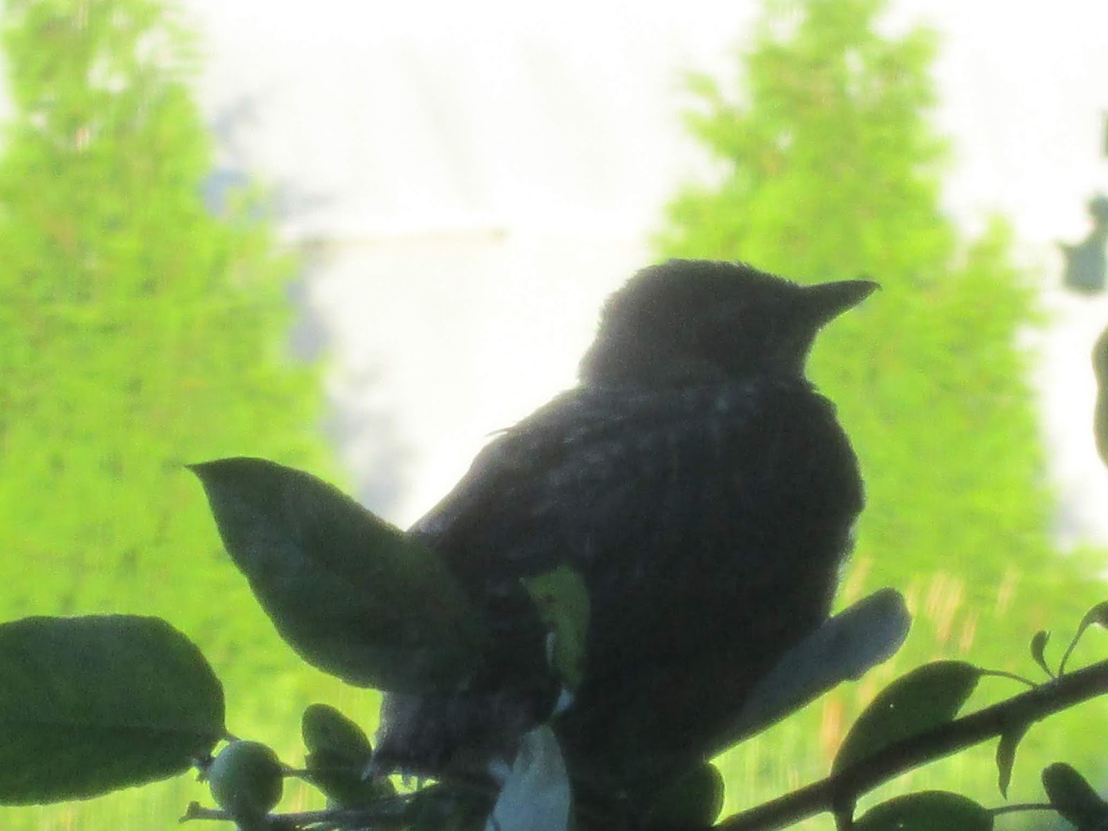 One of the baby birds slowly but surely worked its way out of the nest and then tried to fly again...