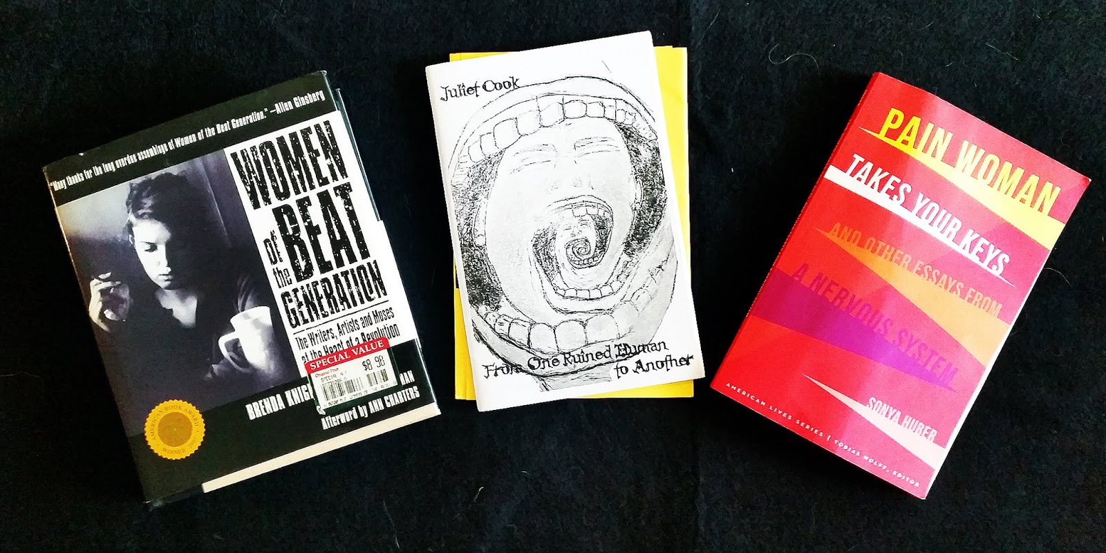 Here's what Eileen said about her photo: "Here's what I've been reading this week--Women of the Beat Generation by Brenda Knight (MJF Books 2000), the new, irreverent chapbook by Juliet Cook called From One Ruined Human to Another (CWP Collective Press 2018), and Pain Woman Takes Your Keys and Other Essays from a Nervous System (by Sonya Huber, U of Nebraska Press 2017). I'm enjoying these books, and thought you might enjoy them, too."