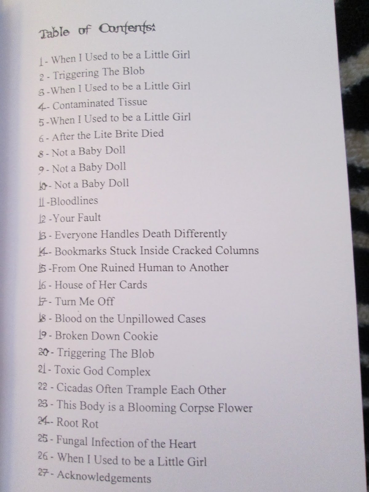 Thursday Simpson's copy of my new poetry chapbook "From One Ruined Human to Another"!