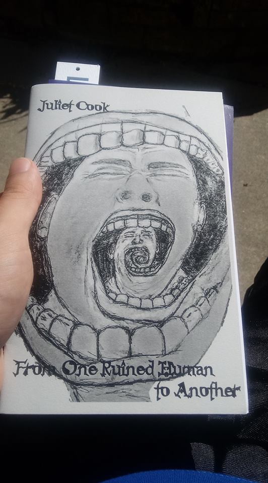 Inside front cover of "From One Ruined Human to Another", a new poetry chapbook by Juliet Cook, with cover art created by Craig Firsdon ( published by CWP Collective Press)