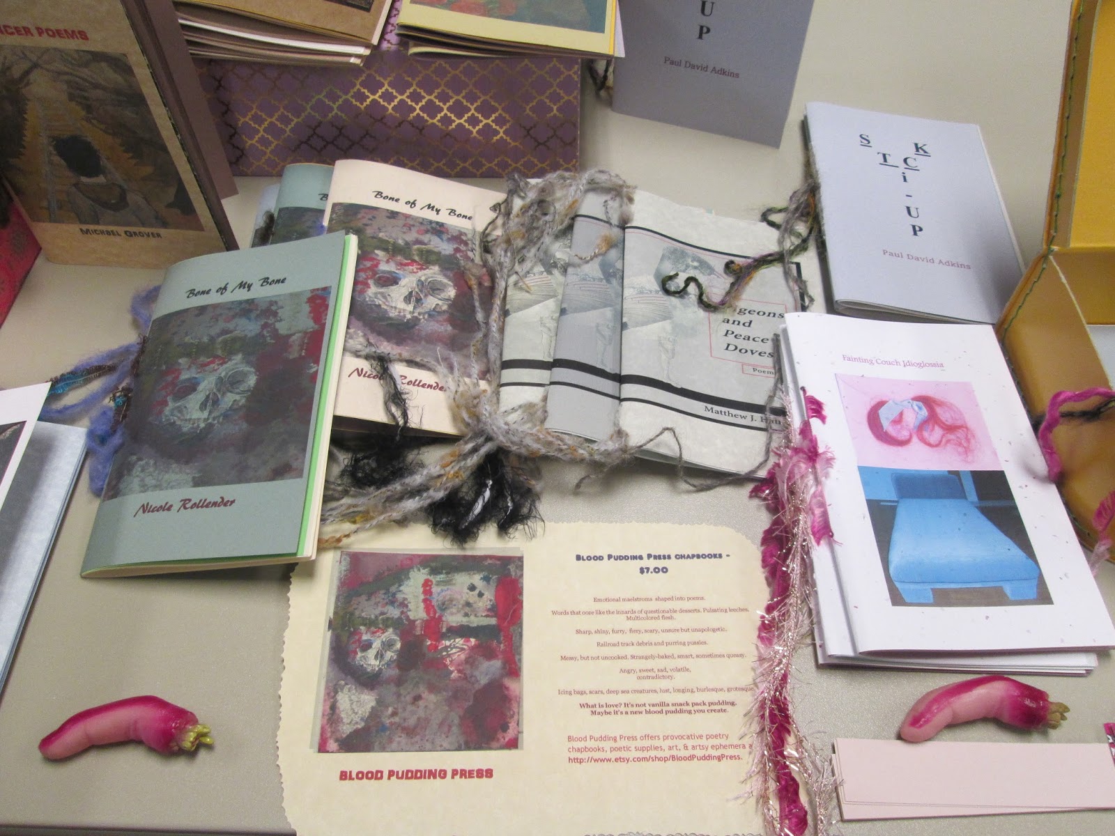 Blood Pudding Press poetry chapbooks at the Blood Pudding Press book fair table at the Columbus State Writer's Conference, this past Saturday May 5, 2018.