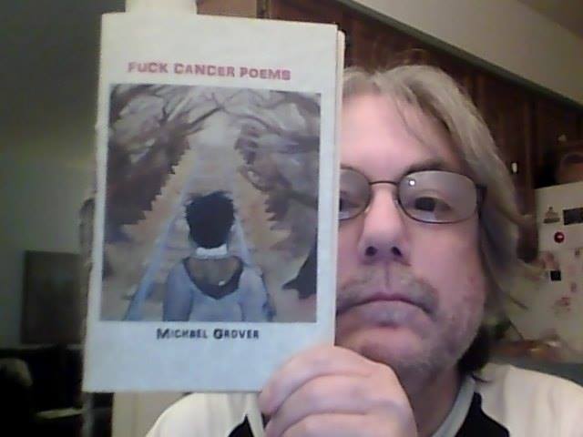 A new book review written by Christina M. Brooks of the new "Fuck Cancer Poems" poetry chapbook by Michael Grover (Blood Pudding Press 2017):"I've never cried thru a book of poetry before but I did with this one. And I still feel teary writing this review. I know the poet personally. Michael is a good friend and has been a staunch supporter of my own poetry from day one. It does make me sad that he is struggling with cancer. And I don't know how long he will be with us. But reading Fuck Cancer Poems that wasn't what brought the tears. What brought the tears was the very penetrating, real writing in it.Michael has a very rebellious spirit... he sometimes comes off as gruff and combative with people and he has paid a heavy personal cost because of that. But underneath that exterior is a very perceptive, battle weary poetic warrior. His writing has a clarity you don't see very many places or hear from many people anymore. And I think it was that clarity, and the very raw, personal character of these poems that hit me so deeply. I felt these poems. They aren't just about his personal battle with cancer... but a keen eyed look at "cancer" in its other forms too.Anyway, Thank you Michael Grover for writing these.. and thank you Juliet Cook for publishing them. And thank you to Craig Firsdon for the cover art.And though they will probably make you cry I highly recommend this book."***