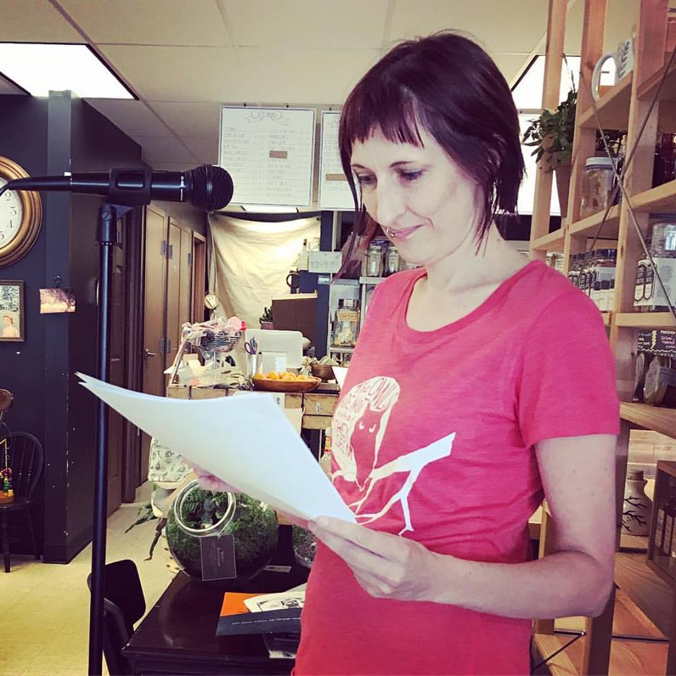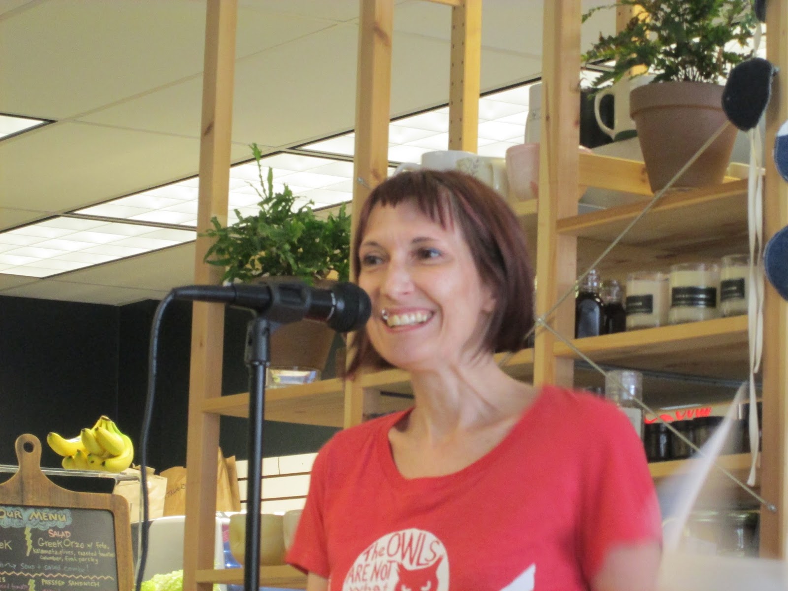 Juliet Cook reading at the Staghorn Poetry Series, on July 29, 2017 (at the Staghorn Garden Cafe in Pittsburgh, PA)