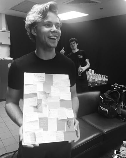 @Ashton5SOS: Tried to take a photo with some notes our Thai fam wrote us, and then there’s Calum being a sweetheart
