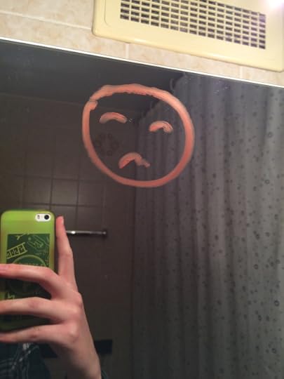 i showed my mom the jet black heart video and the next time i walk into the bathroom i see this.. OKAY