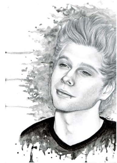 Luke Hemmings drawing, pencil with watercolor...