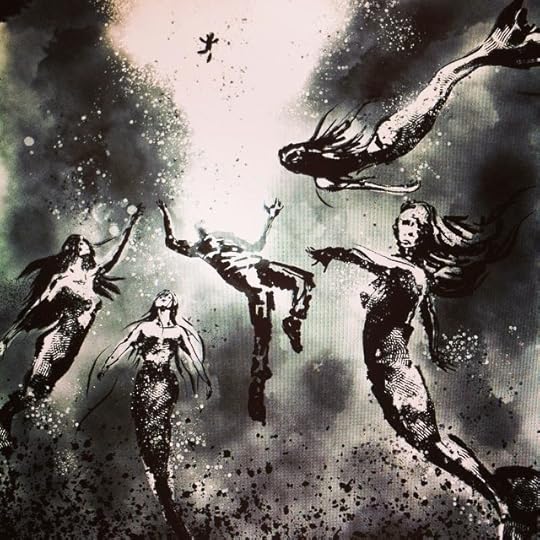 The first image is a snap from a 6 panel "Graphic novel style" piece he did of a moment in the story where one of the characters' quests comes to its watery end: