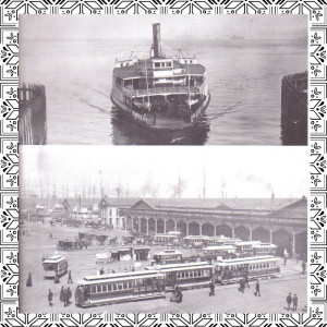 In the 1880’s passengers boarded the ferries through this structure at the foot of Market Street, San Francisco, for the ride to the train terminal at Sausalito.