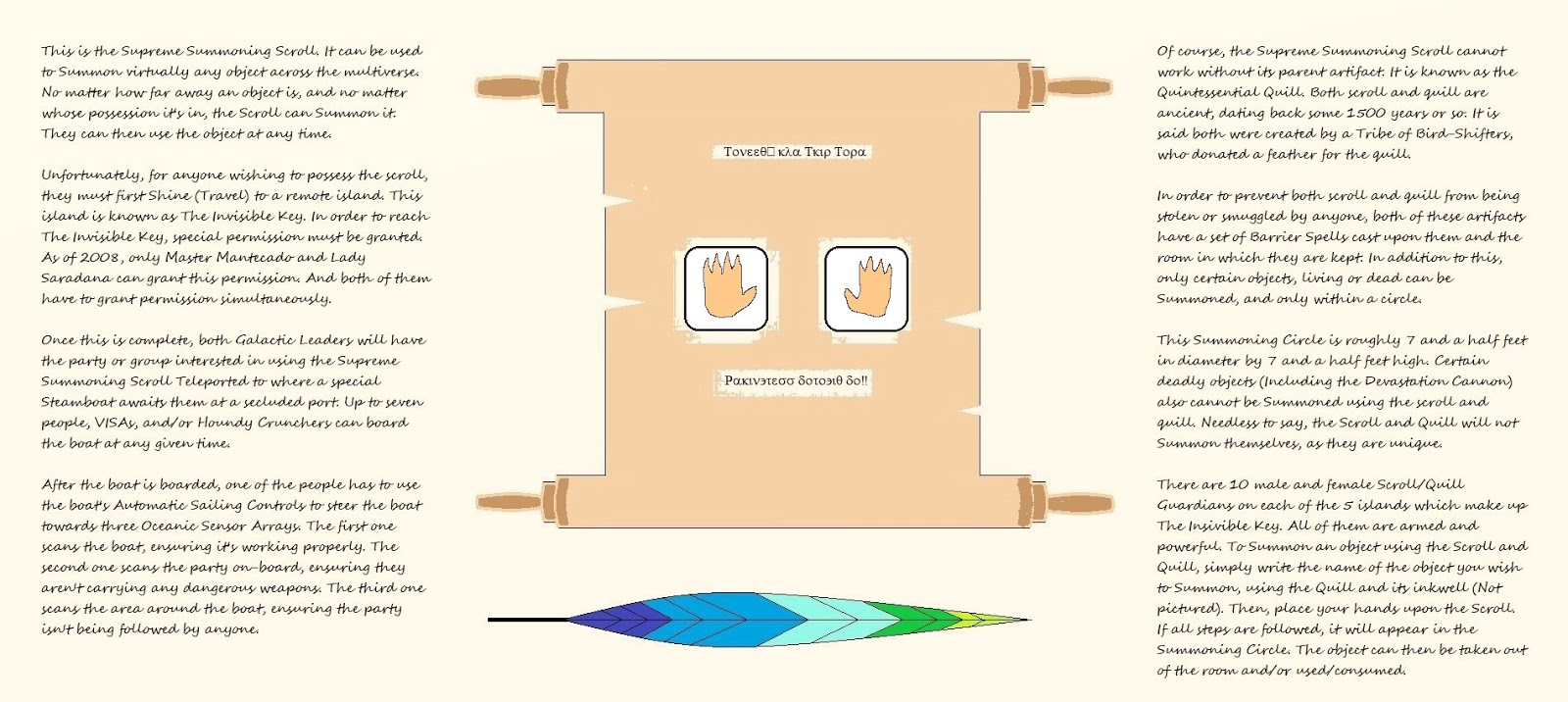 And while we’re no longer hosting Featured Sky Fighters or Honored Houndy Crunchers, we just might post a few more pictures of characters, locations, Attacks, and more. Or even a brand new video showcasing them and maybe a real weapon and/or scroll!...Provided enough of our fans purchase our hand-crafted works.