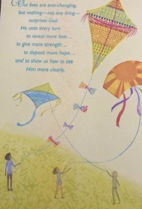 I want to start out by thanking all my friends who showered me with loving, supportive messages in response to my 11/12 post. Your messages have buoyed me up and given me strength and inspiration as I move along in my journey. Like this one, a card from my dear writer friend Marian Beaman who reminded me that the “kites represented flying victorious over the obstacles.” Thank you, Marian! Be sure to visit Marian at her delightful blog, Plain and Fancy Girl where she regales her readers with stories from her Mennonite roots.