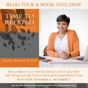 Karen is the author of Time to Refresh: A 21- Day Devotional to Renew Your Mind After Being Laid Off, Fired or Sidelined.