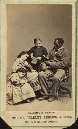 These cards were sold in 1863-1864 to help raise money to pay for schools for emancipated slaves in New Orleans. The organizers realized that the sympathies that people would have for children who looked white but had been slaves was going to be greater than the sympathy they might have for black-skinned children.