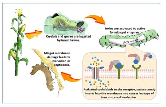 А как биотехнологи добиваются устойчивости растений к вредителям? Говоря простыми словами, учёные внедряют в геном растений гены Cry-токсинов, опасных только для определённых групп членистоногих и круглых червей. Избирательность действия Cry-токсина связана с тем, что он должен взаимодействовать с определённым рецептором в кишечнике жертвы. А у человека (да и у многих членистоногих) такого рецептора просто нет.