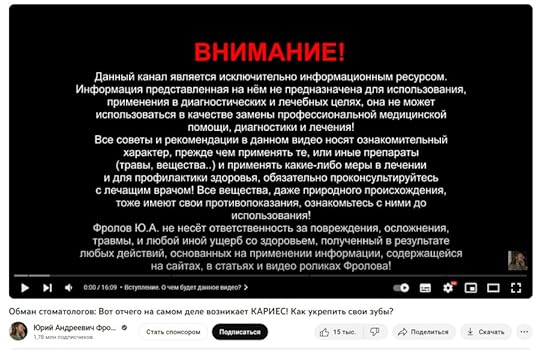 Правильно! Либо объелись содой с крапивой, либо разлогинились из интернета, отказавшись от мобильных устройств (их судьба теперь неизвестна). Не случайно из тех видео, что все-таки набрали более 100 тысяч просмотров одно посвящено причинам смерти сыроедов, а второе про обман стоматологов с предусмотрительным дисклеймером, что автор "не несет ответственность за повреждения, осложнения, травмы, и любой иной ущерб со здоровьем, полученный в результаты любых действий, основанных на применении информации, содержащейся на сайтах, в статьях, и видео" автора. То есть он сам, видимо, о чем-то начинает догадываться.
