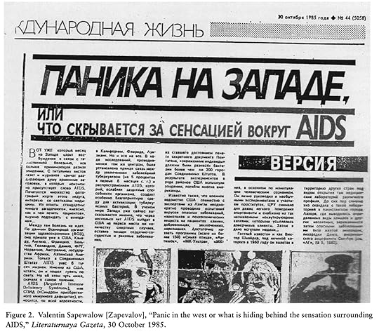 В те же годы к распространению этих мифов подключился Советский Союз. В авторитетной в те времена «Литературной газете» появилась заметка о том, что СПИД создали именно в США — ведь там есть биологические лаборатории, а ещё первые пациенты с этим недугом были именно американцами. Приведу цитату из «Литературной газеты»: «Известно также, что военное ведомство США совместно с экспертами из Англии неоднократно проводили испытание вирусов опасных заболеваний, наркотиков и психохимических веществ на пациентах клиник, добровольцах, заключённых, наркоманах. ЦРУ снимало для девиц лёгкого поведения апартаменты и снабжало их так называемыми нокаутирующими каплями, которыми усыплялись доверчивые клиенты. Затем в дело вступали медики».