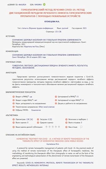 Подписчица скинула мне совершенно невероятную ссылку, где применяют гомеопатию. Для лечения COVID-19. Дистанционно. С помощью мобильного телефона. Разумеется, информация об этом удивительном открытии от 2021 года размещена в Российском Индексе Научного Цитирования.