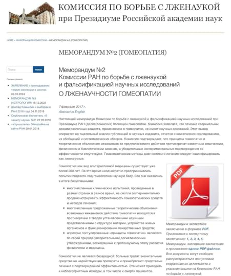 Разумеется, с тех пор провели множество научных исследований эффективности гомеопатии. И те из них, которые проводили по всем правилам, на больших выборках, с плацебо-контролем, стабильно давали отрицательный результат. Гомеопатия показывала себя не лучше, чем плацебо. Причем тестировали даже индивидуально подобранную гомеопатию: там все пациенты проходили «тестирование», получали индивидуальный рецепт, но потом половине без их ведома выдавали пустышки. Результат был нулевым. Прочитайте об этом подробно в меморандуме Комиссии РАН по борьбе с лженаукой. Мы писали его вместе с большой группой экспертов — врачей, физиков, химиков и специалистов по статистике.