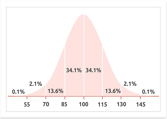 Чтобы вы понимали: коэффициент интеллекта – это относительная величина. Мы прогоняем через тест огромное количество людей, а потом раскладываем результаты на графике. Значение в «100 баллов» выбирают как средний интеллект в исследуемой популяции. Раз в несколько лет учёные заново нормируют тесты: то есть задачи остаются те же, а вот баллы IQ, которые за них дают, немного сдвигаются. Так, чтобы метка в 100 баллов правильно отражала текущий «средний интеллект по больнице».