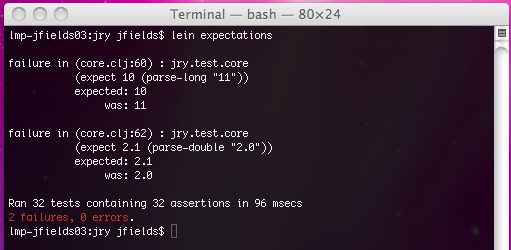 Clojure: expectations, colorized